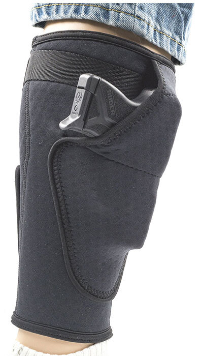 We also use a strap at the top which allows infinite adjustability to fit your own leg and carry style. A convenient zipper on the bottom ensures you can easily take the BUGBite on and off. Lastly, we use inside 'grip dots' on our neoprene to ensure the holster doesn't move but is breathable and comfortable at all times.